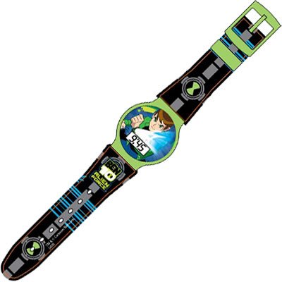 This EXCLUSIVE Ben 10 Alien Force Omnitrix watch is a great accessory for any young Ben 10 fan. This black, blue and green digital watch features a top that flips open to reveal an image of Ben activating his Omnitrix. The watch face measures approximately 1 3/8 inches in diameter and the band measures 8 3/8 inches long. Ages 3 and up.